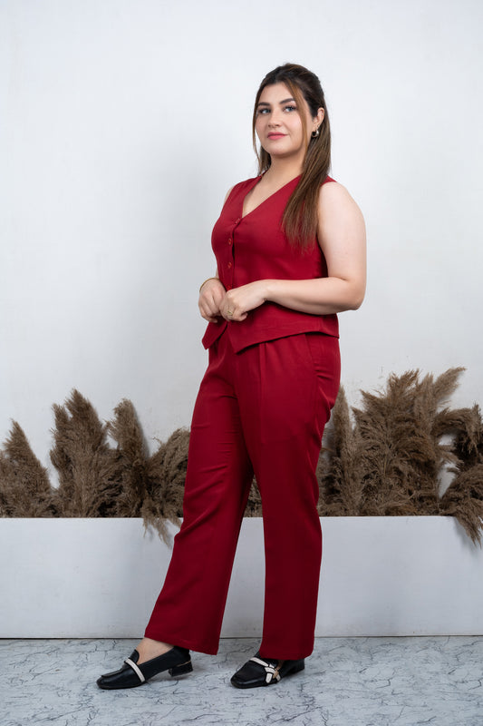 VISHIMA Regular Straight Leg Trousers with pockets | Red